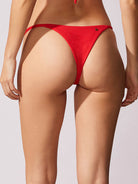 Tanga lateral estrecha lisa de pequeña cobertura, con detalle de logo en baño dorado en la parte trasera.