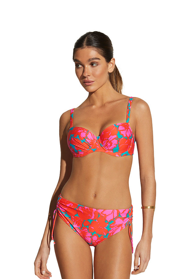Bikini de capacidad de dos piezas. Diseñado para ofrecer máxima sujeción y confort hasta en tallas superiores, lleva una copa interior y aro para un mayor soporte. Tirantes regulables y a medida que la copa aumenta, el tirante es más ancho. La elegancia eterna de la naturaleza en su máximo esplendor toma forma en este estampado floral que rinde tributo a la belleza icónica y atemporal de un jardín lleno de gracia, frescura y vitalidad.