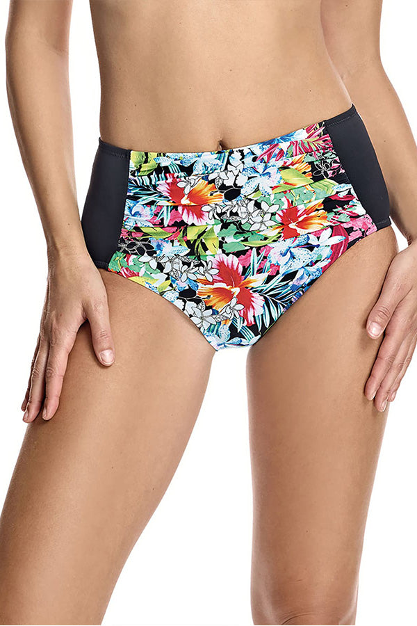 Bottom de bikini clásica tipo faja con refuerzo delante con estampado floral. Completamente forrada. Tejido de vanguardia con un alto poder moldeador.