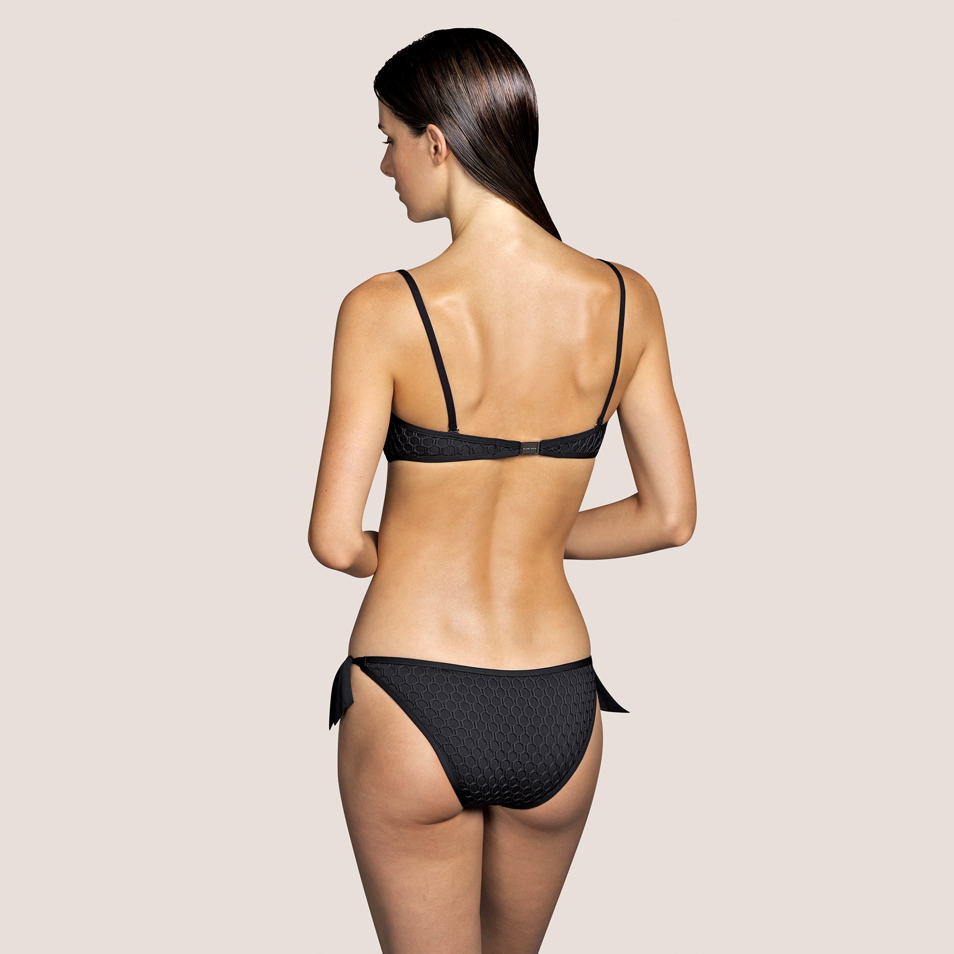 Bottom de bikini mini, con tirantes, de tiro bajo de la colección Kathryn de Andres Sarda Swim. Edición limitada. Un solo color: negro, elegante en esencia.