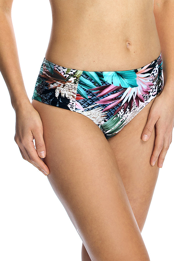 Bottom de bikini costado mas alto, con estampado floral. Completamente forrada. Tejido de vanguardia con un alto poder moldeador, con una alta resistencia al cloro, cremas y aceites bronceadores y excelentes propiedades de absorción de la humedad.