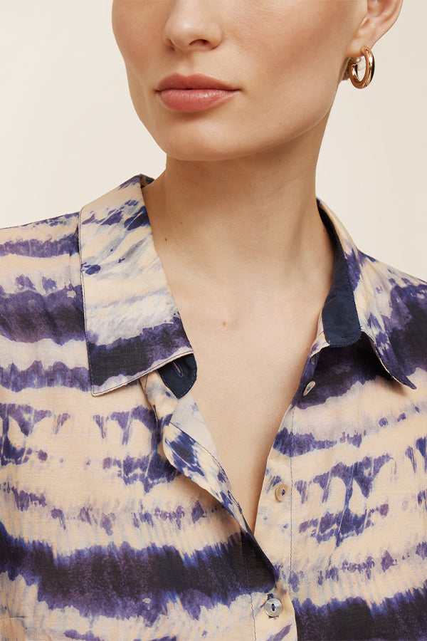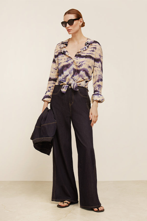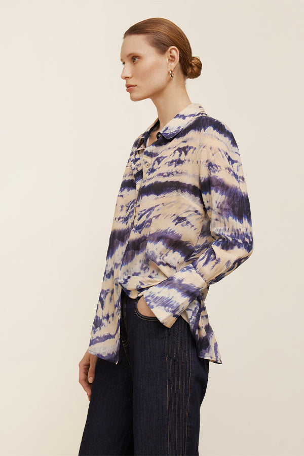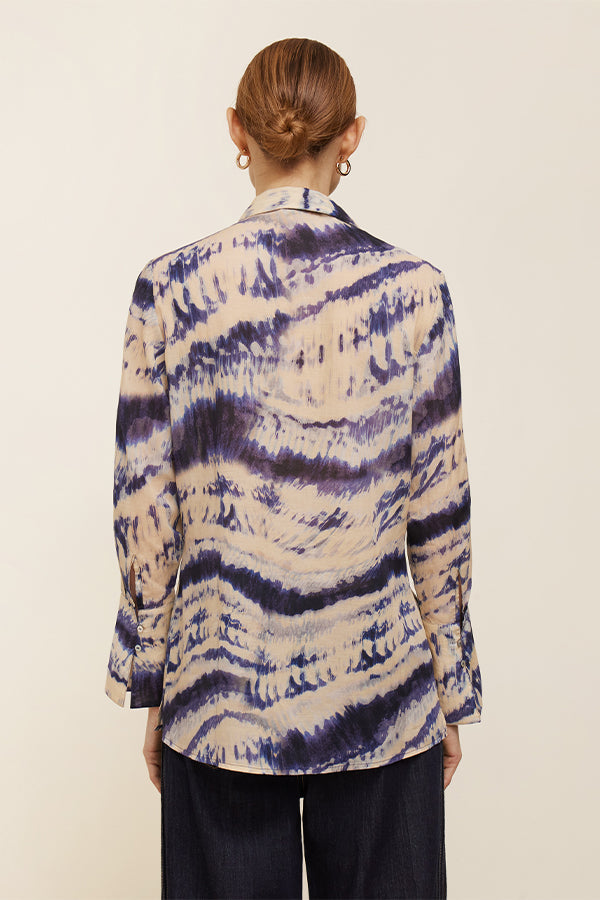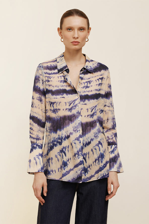 Blusa estampada de corte recto y manga larga. Pequeñas aberturas en los laterales.