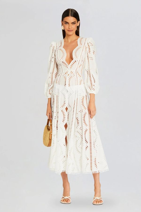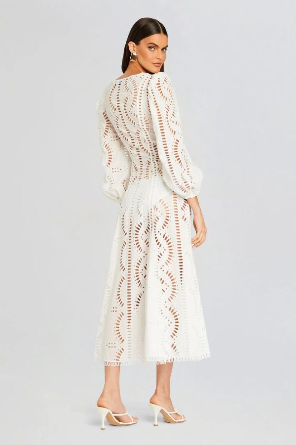 El caftán Kelik aporta elegancia y frescura a cualquier look estival. Su delicado tejido bordado y sus sugerentes mangas hacen de esta pieza una oda a la sofisticación. Llévalo esta temporada en tus celebraciones más especiales para sentirte bella y libre.