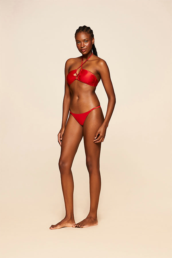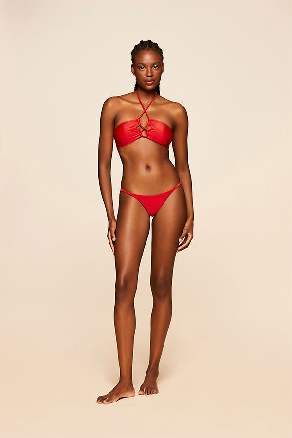 Bottom de bikini con lazo lateral regulable, detalle de anillas en los costados.