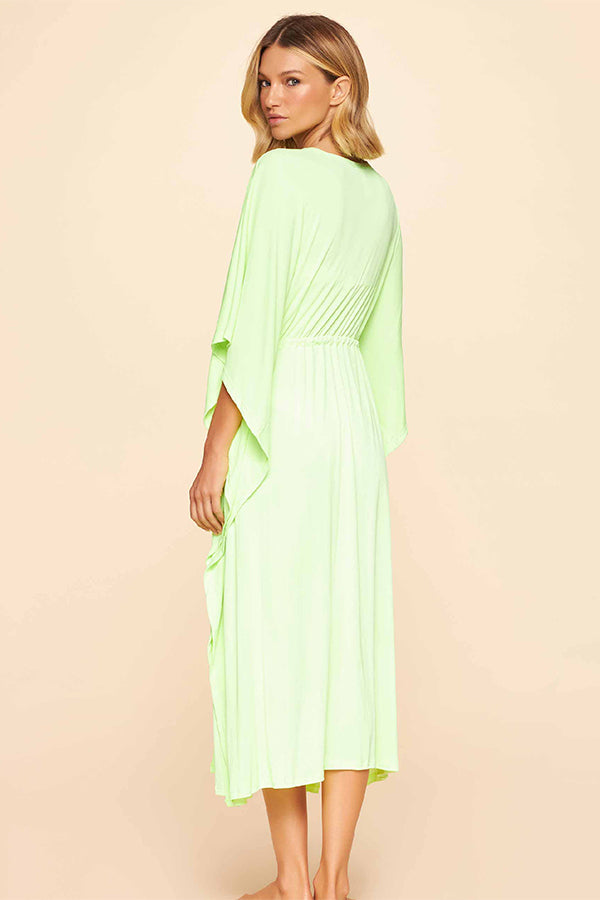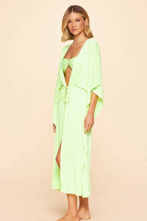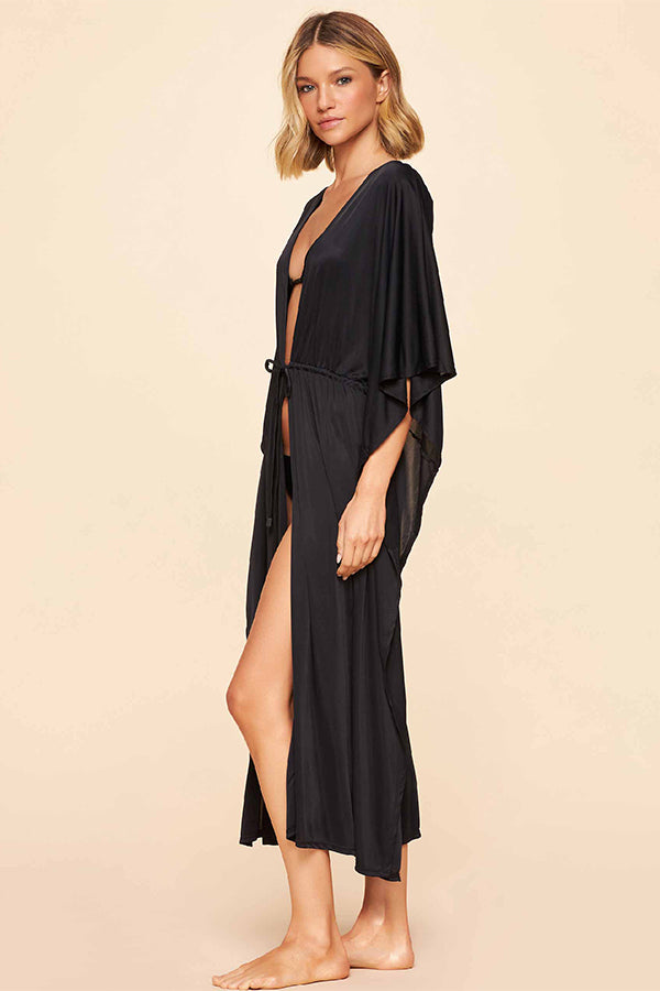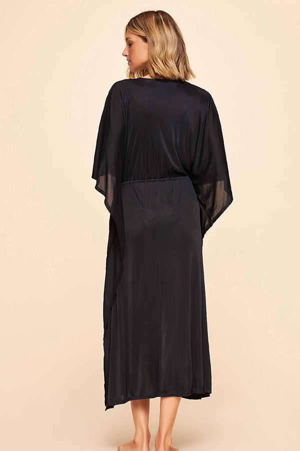 Kaftán largo y liso con apertura en detalle frontal de puntas metálicas.