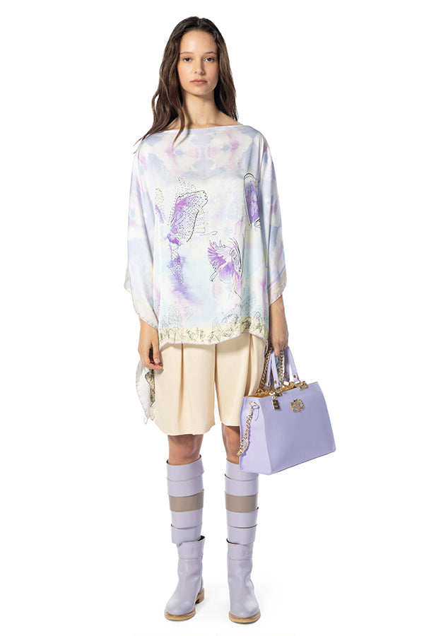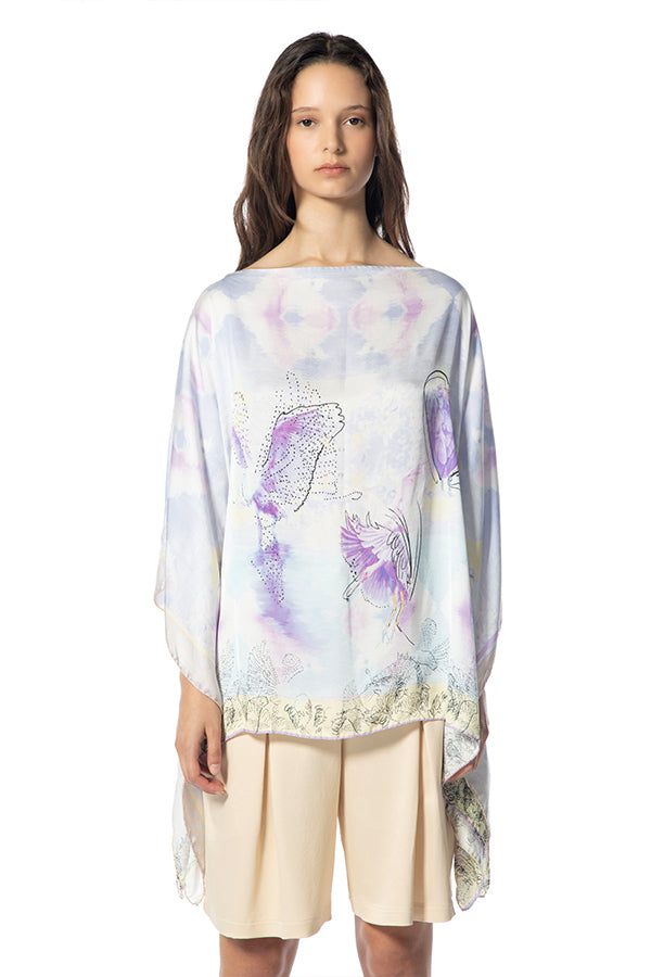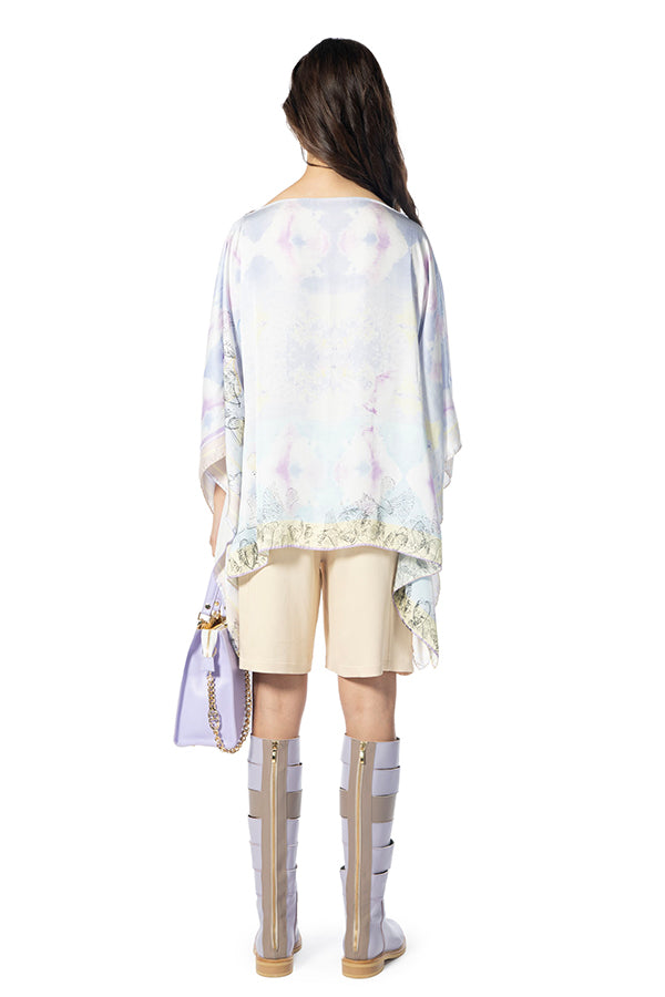 Magnífico caftán reversible con estampado pastel, suave primavera. Este caftán corto es una pieza elegante y chic, que ofrece una estética moderna y refinada para diferentes ocasiones y estilos de vestir. Modelo sin cordones, talla única.