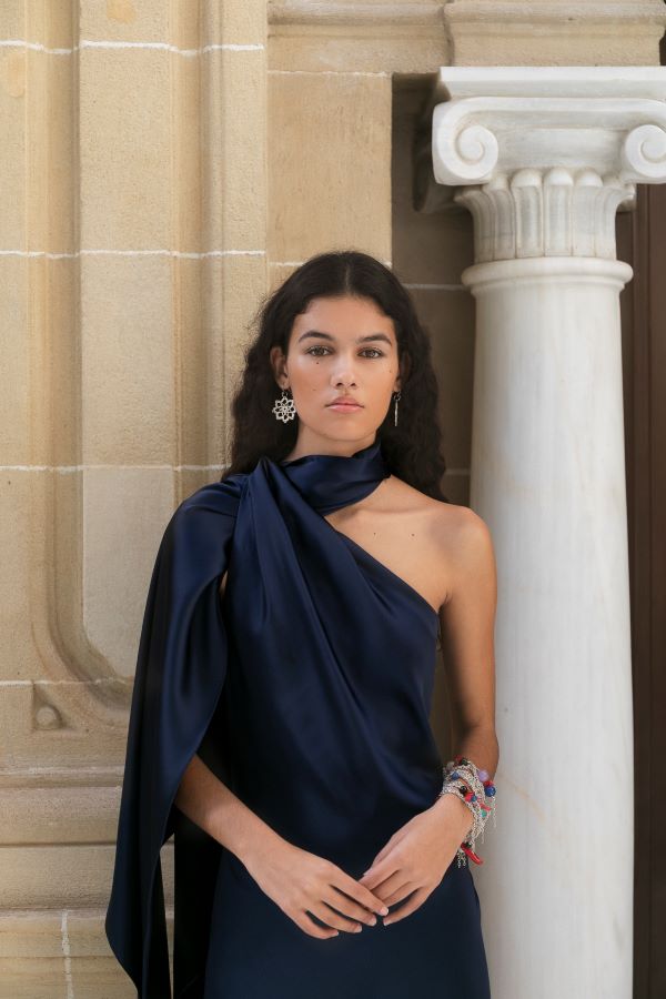 En honor a la princesa Diana. El Diana es la versión de uno de nuestros modelos más vendidos, el Negroni. Decidimos añadir otra lazada para hacer el vestido único y aún más especial. Esta doble lazada permite que lo lleves de diferentes maneras: puedes ponértelo a modo de capa, de lazada en el cuello, estilo asimétrico... todo depende de tu imaginación. Doble lazada en el cuello.