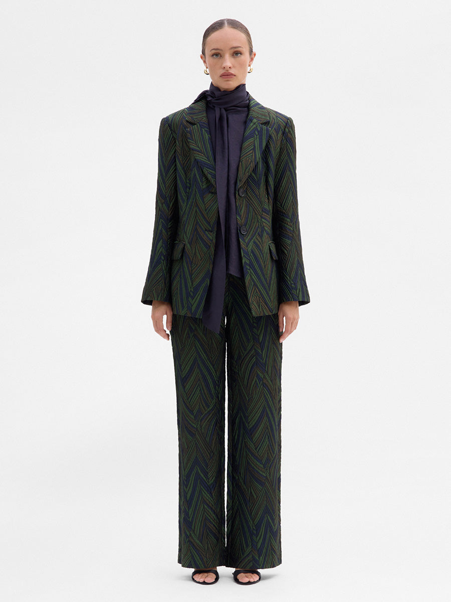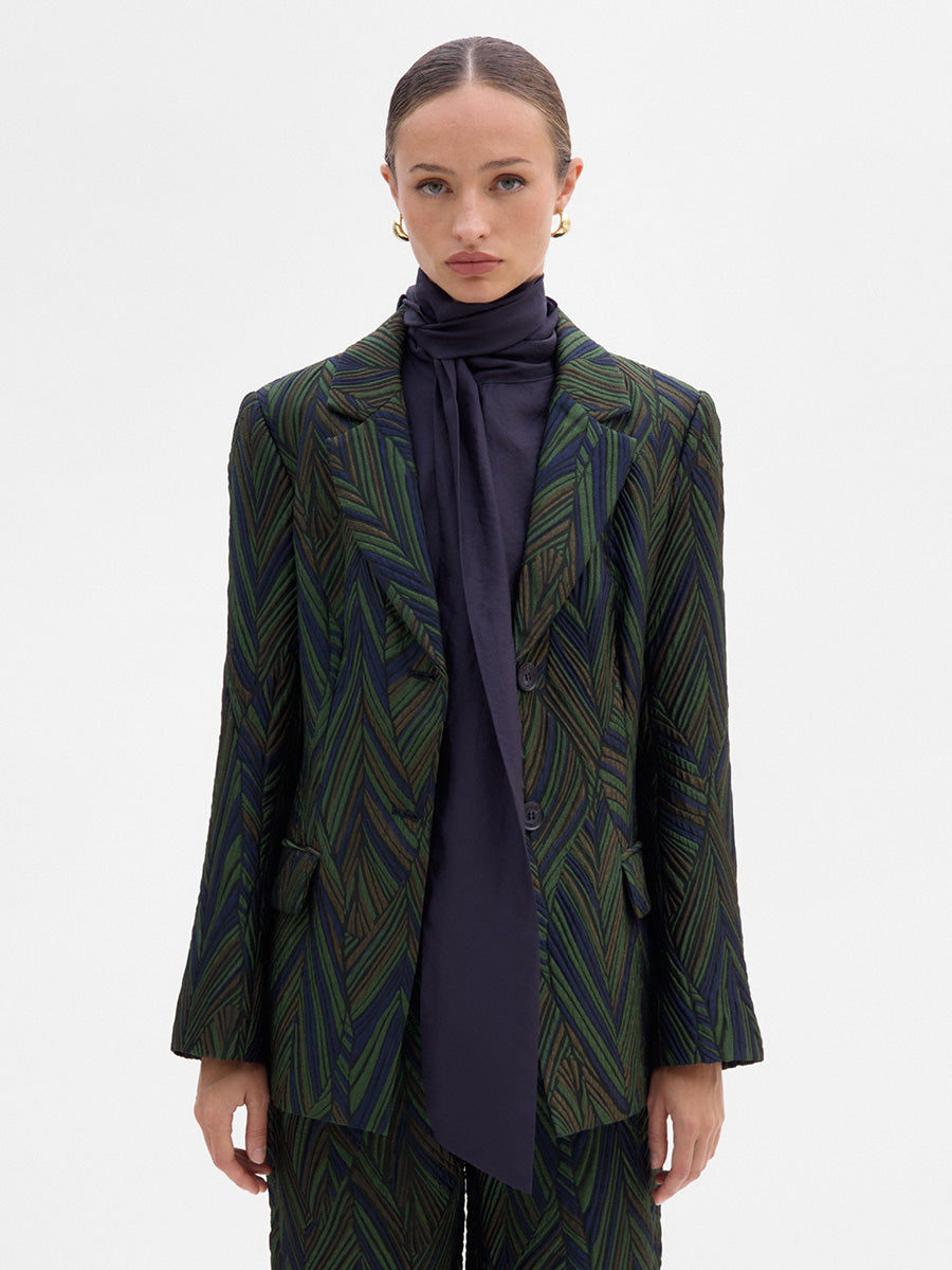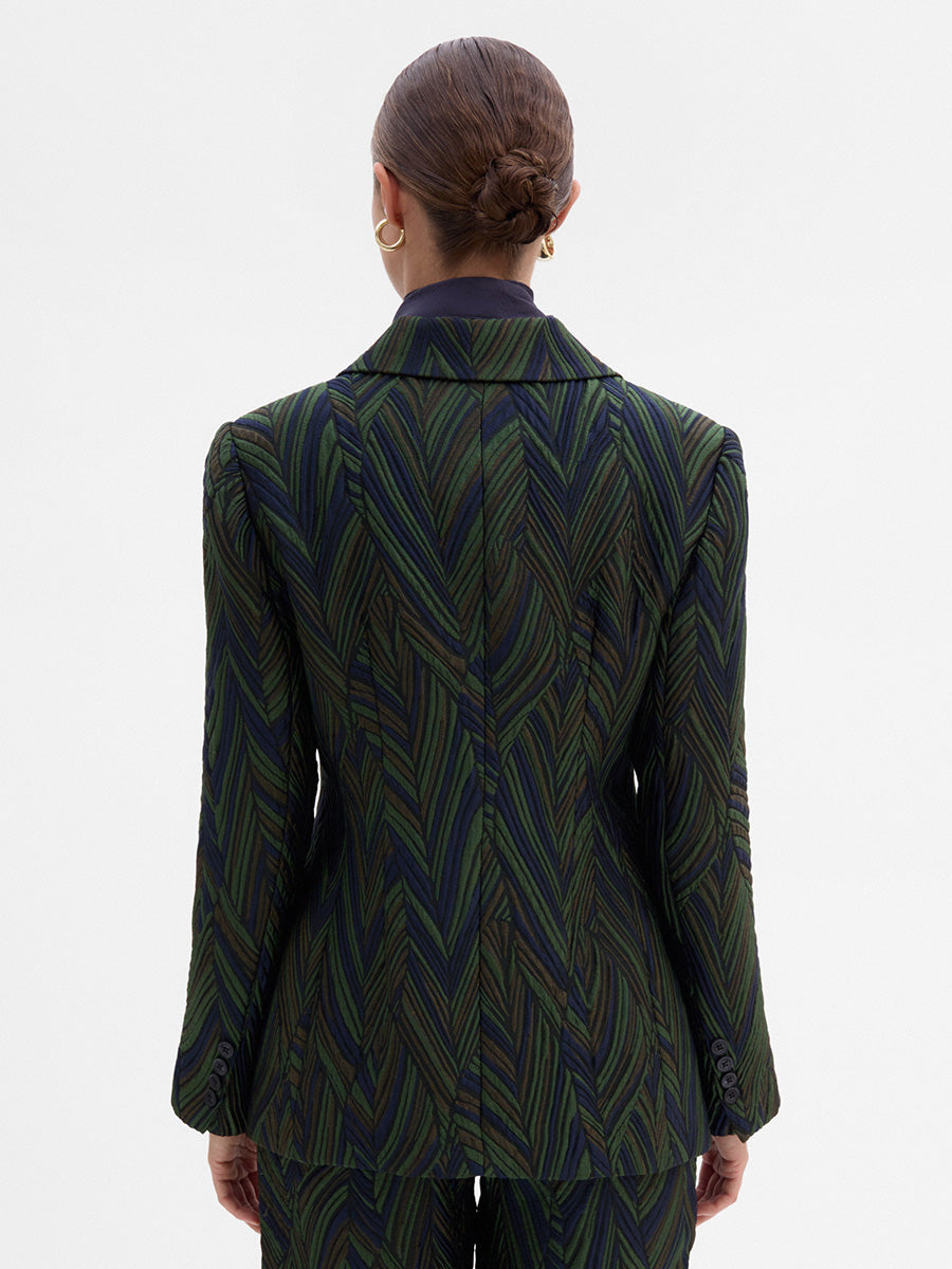Americana entallada con solapa en pico y botonadura frontal. Bolsillos frontales con tapeta. Manga larga con botones decorativos..
