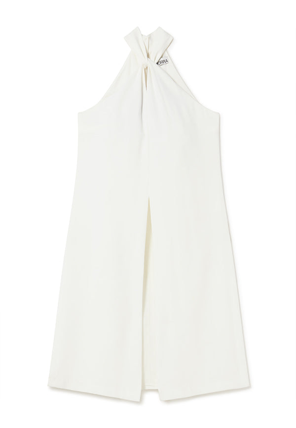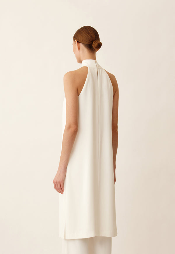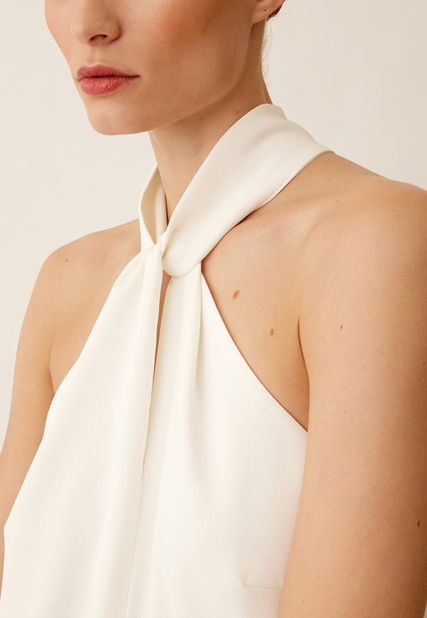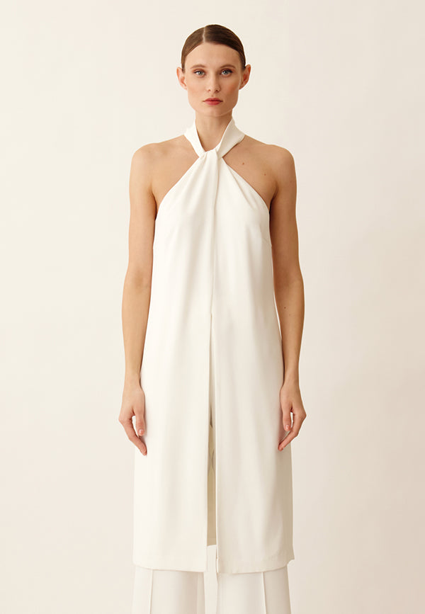 Top halter largo de tejido crepé con oberturas laterales y cierre con botones forrados y presillas