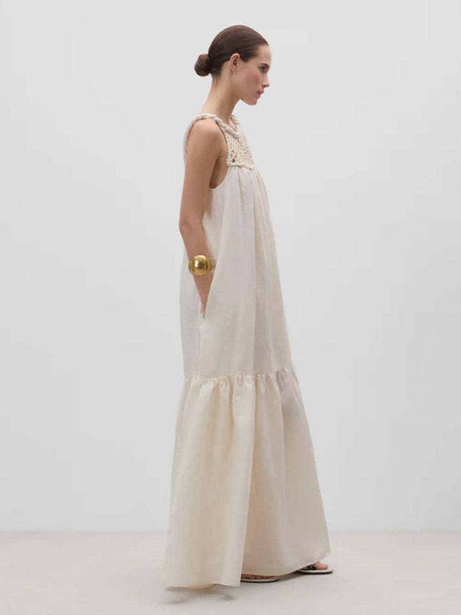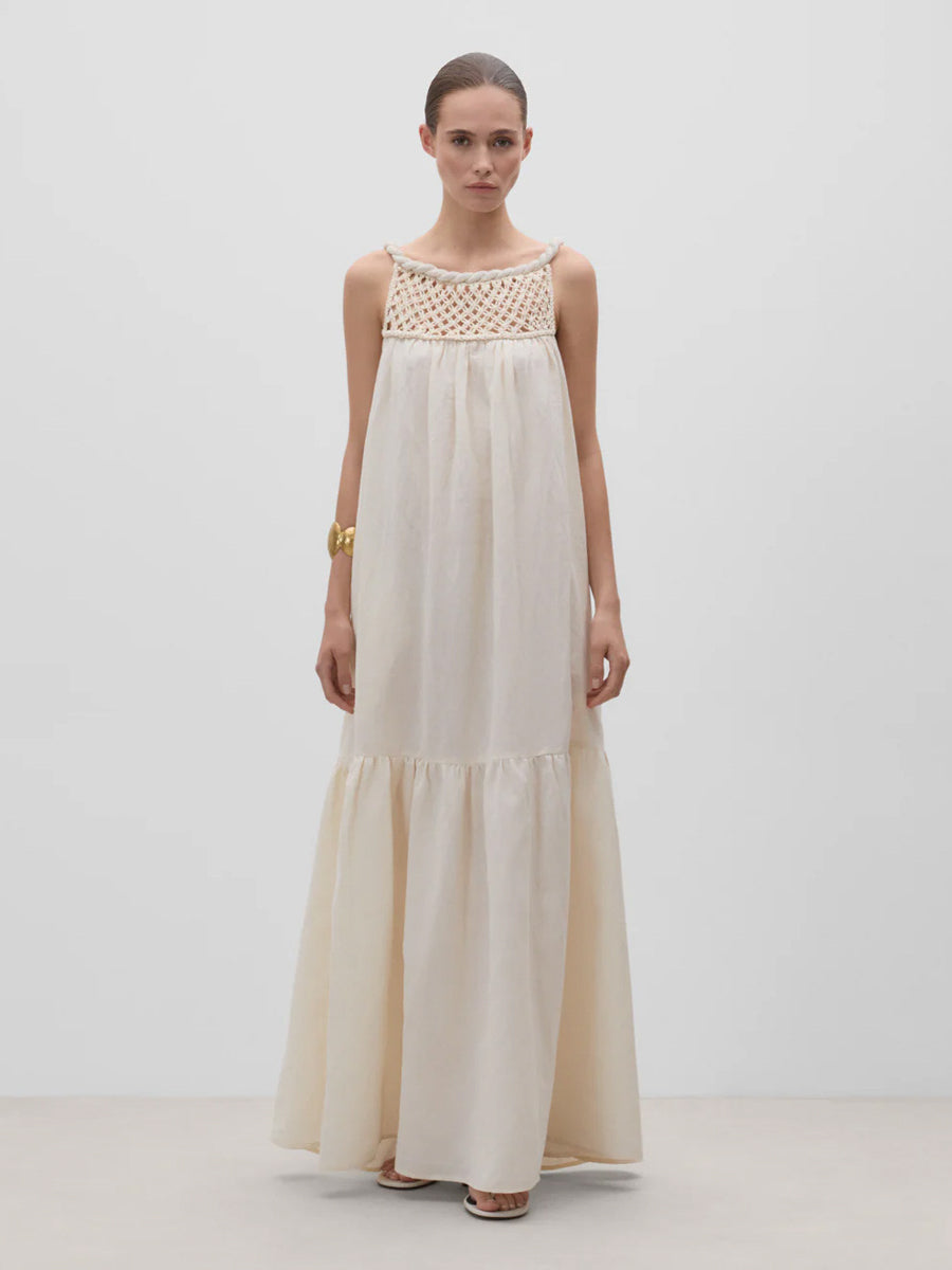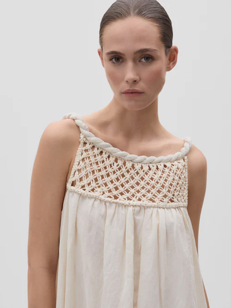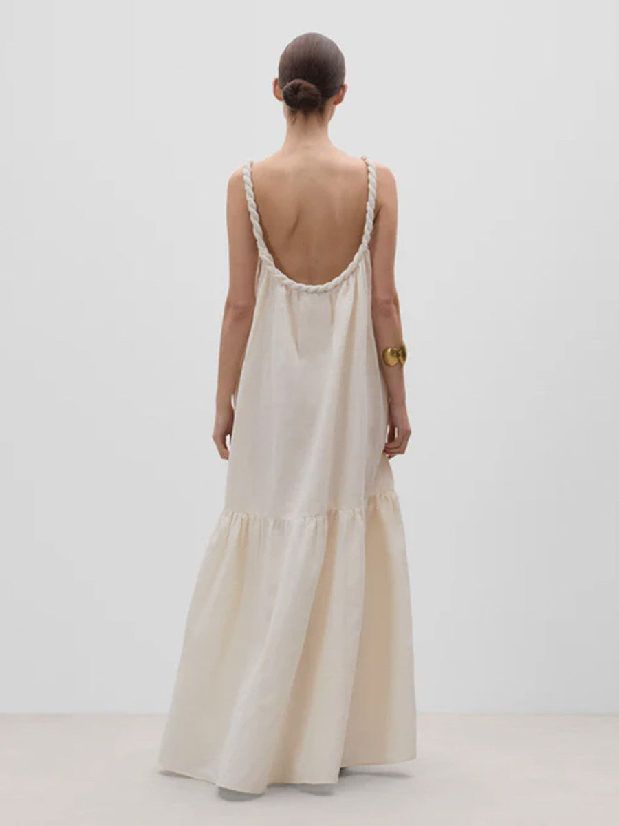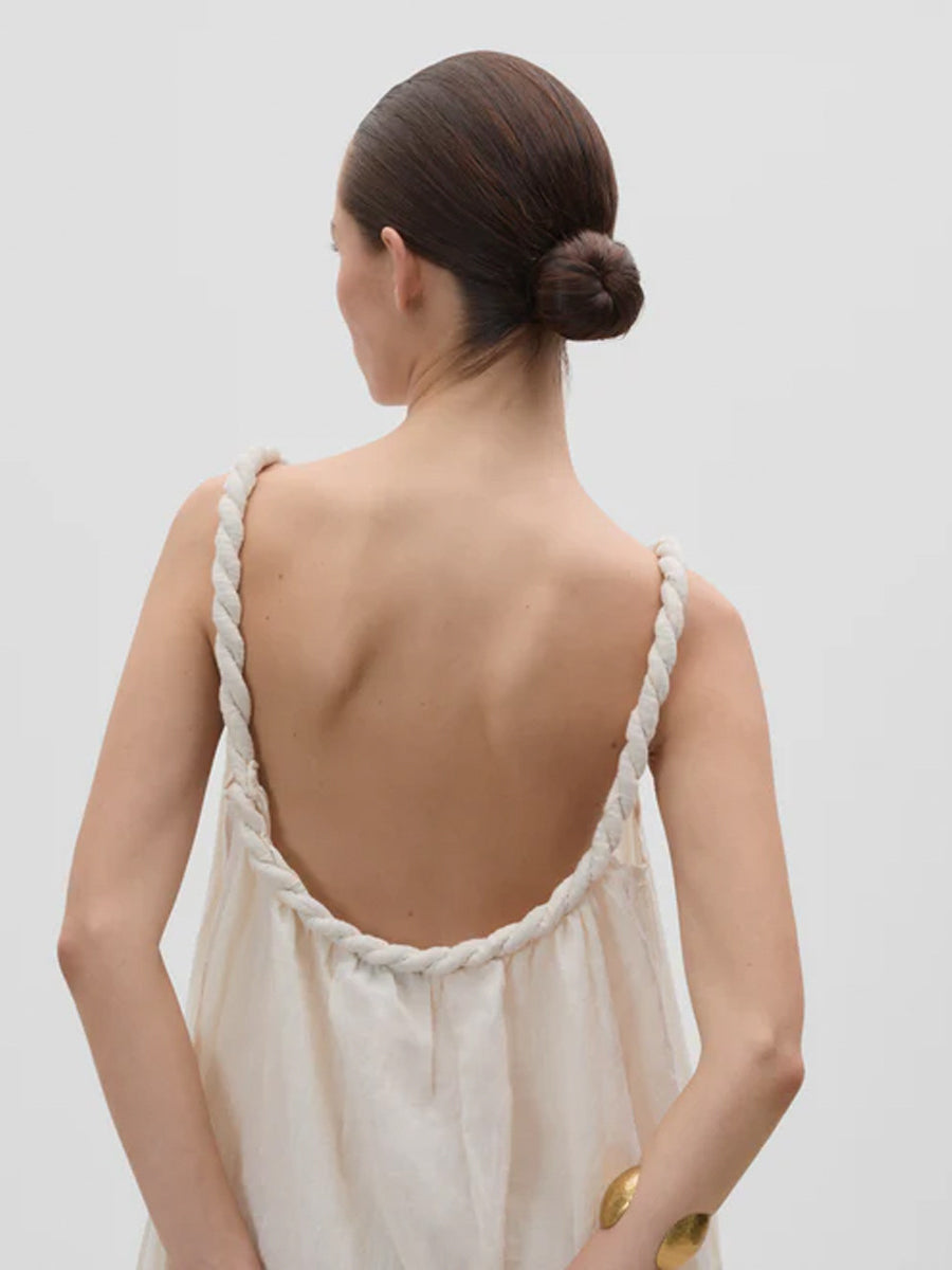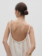 Vestido de tirantes trenzados con espalda descubierta. Cortes con frunces.