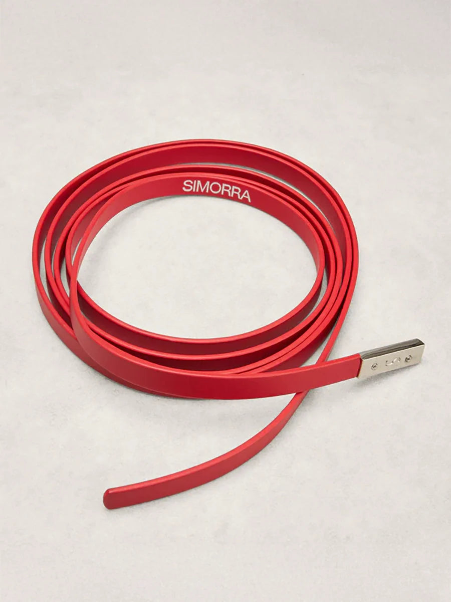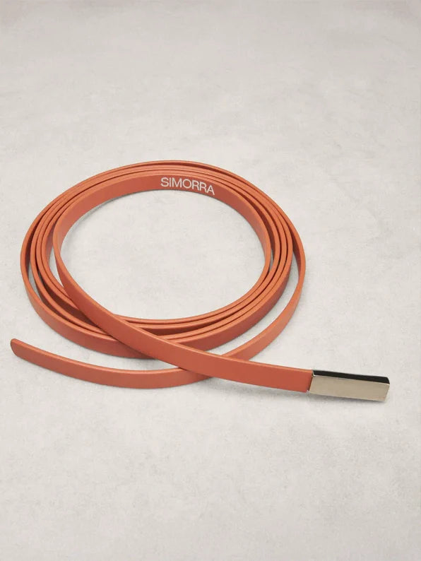 Cinturón de piel en forma de cordón. Acabado con pequeña pieza metálica con logo.