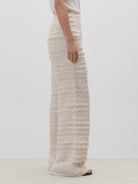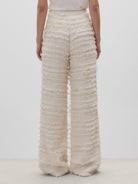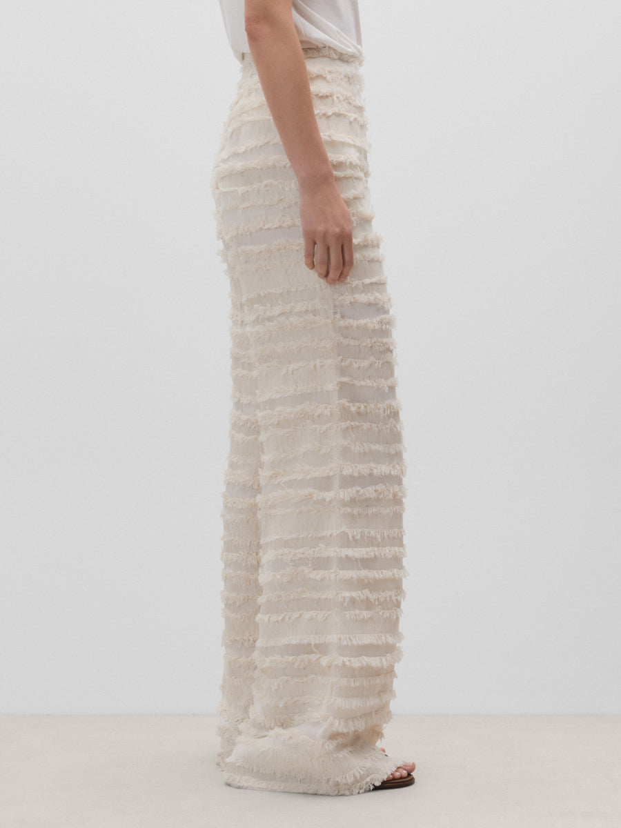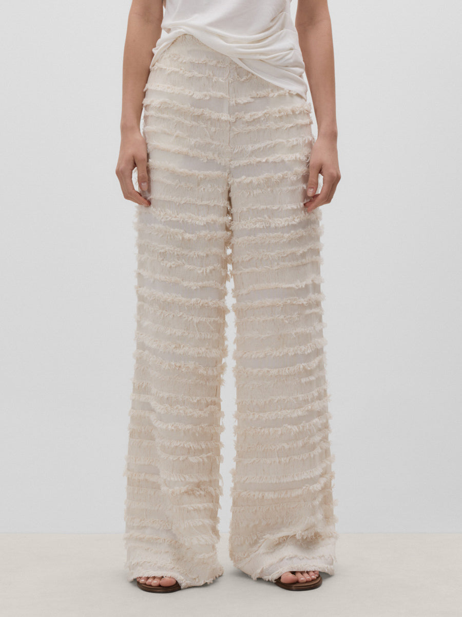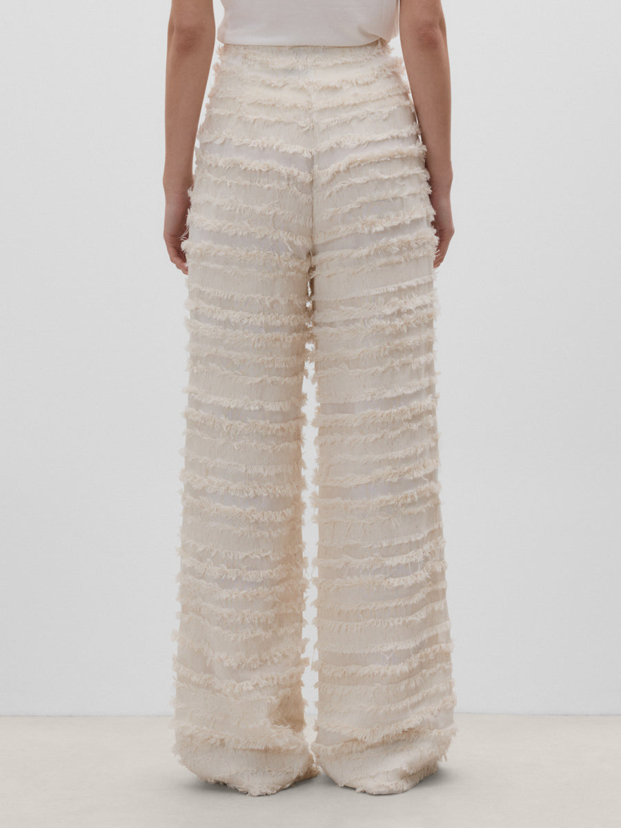 Pantalón fluido textura. Cierre mediante cremallera lateral.