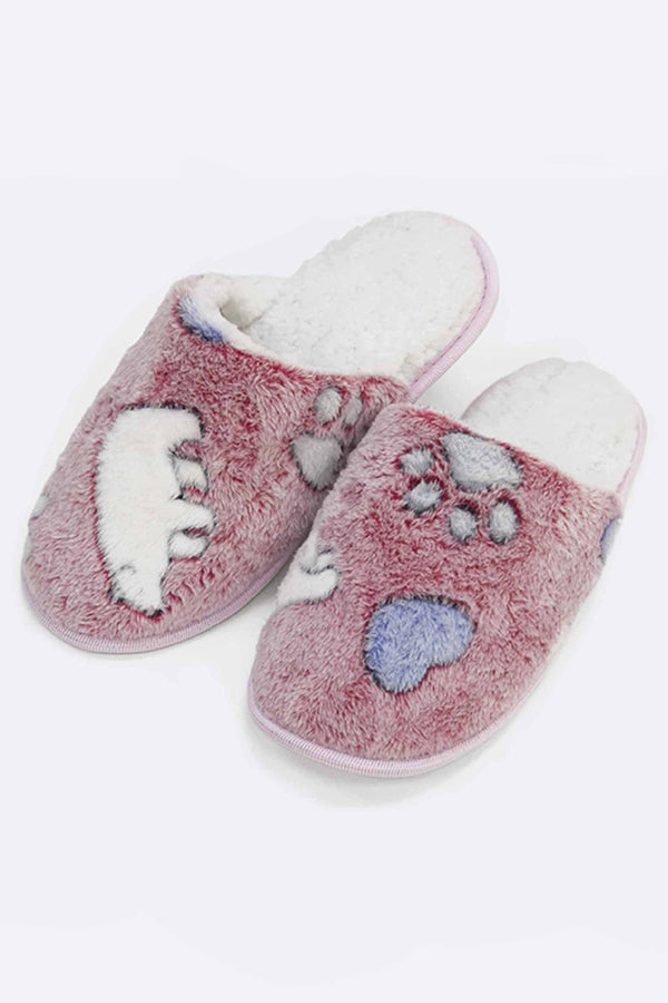 Pantuflas de mujer que combina el tejido polar estampado y el borreguito por dentro.