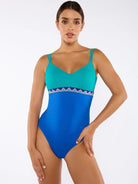 Bañador Básico Foam Espalda Escotada Copa C de nuestra colección muy juvenil! Este bañador combina dos colores lisos para un look moderno y vibrante, mientras que la goma con dibujo zig zag le da un toque único y divertido.