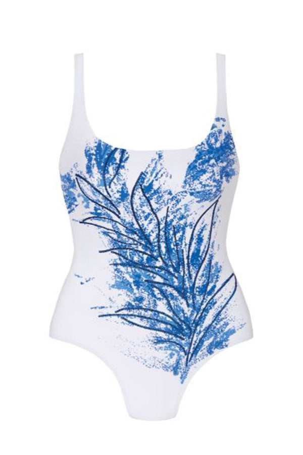 Bañador de corte clásico con escote en V ultra favorecedor y copa suave. Patrón que estiliza la figura y tirantes delgados para un óptimo soporte y máximo confort.