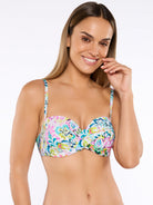 ¡Atrévete a brillar con el top de bikini bando aros control! Con copa suave y un diseño multiposición con tirantes regulables, este sujetador te proporciona el soporte y la comodidad que necesitas, mientras realza tu figura.