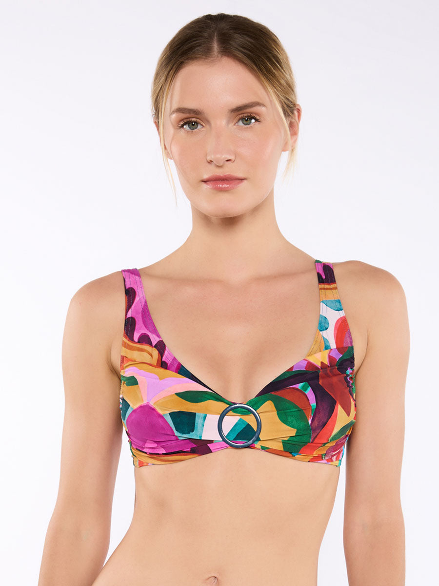 Sujetador de Bikini Top Aros Copa B con contorno y tirante graduable.