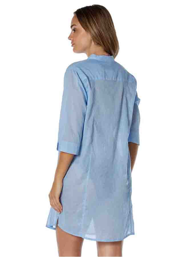 Camisa de mujer de línea lisa con costuras en el delante y detrás y media manga en color blanco.