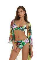 Bikini de dos piezas, corte favorecedor para dar soporte hasta en las tallas más grandes. Su aro y corte entrelazado realza el busto de forma natural además de ofrecer una alta sujeción. Interior y lateral forrado de tul con soporte de media luna y tirante regulador que aumenta su ancho en función de la talla, adaptándose a ti. A juego con braga básica de corte alto y lateral ancho para un mayor confort.