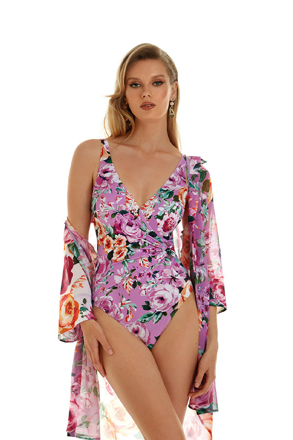 Bañador de control. Escote en pico entrecruzado muy elegante con drapeado en la cintura estilizando la silueta y moderno detalle lateral de anilla. Interior con suave copa y goma interior bajo pecho para una mayor sujeción.