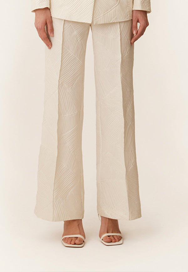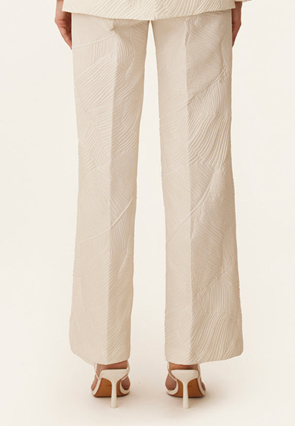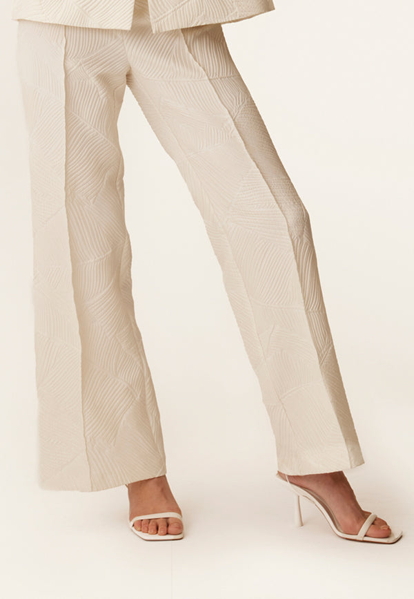 Pantalón largo de jacquard con bajo ligeramente acampanado, sin cinturilla y cierre mediante cremallera.