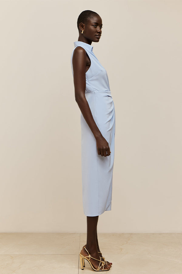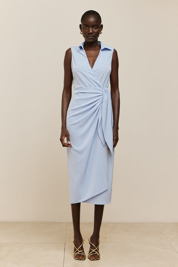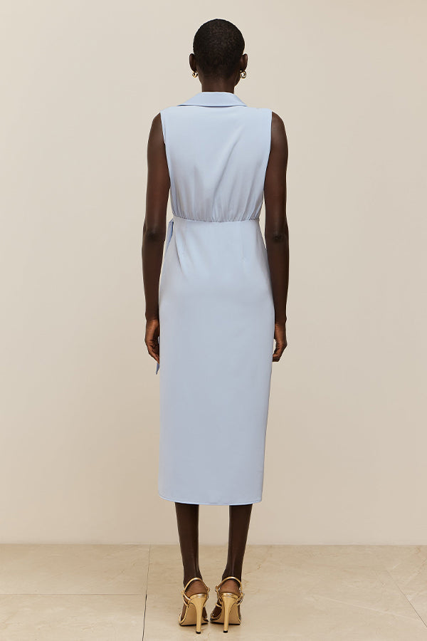Vestido camisero de algodón bordado con cuello camisero y escote pico. Manga corta. Cierre mediante botonadura frontal.