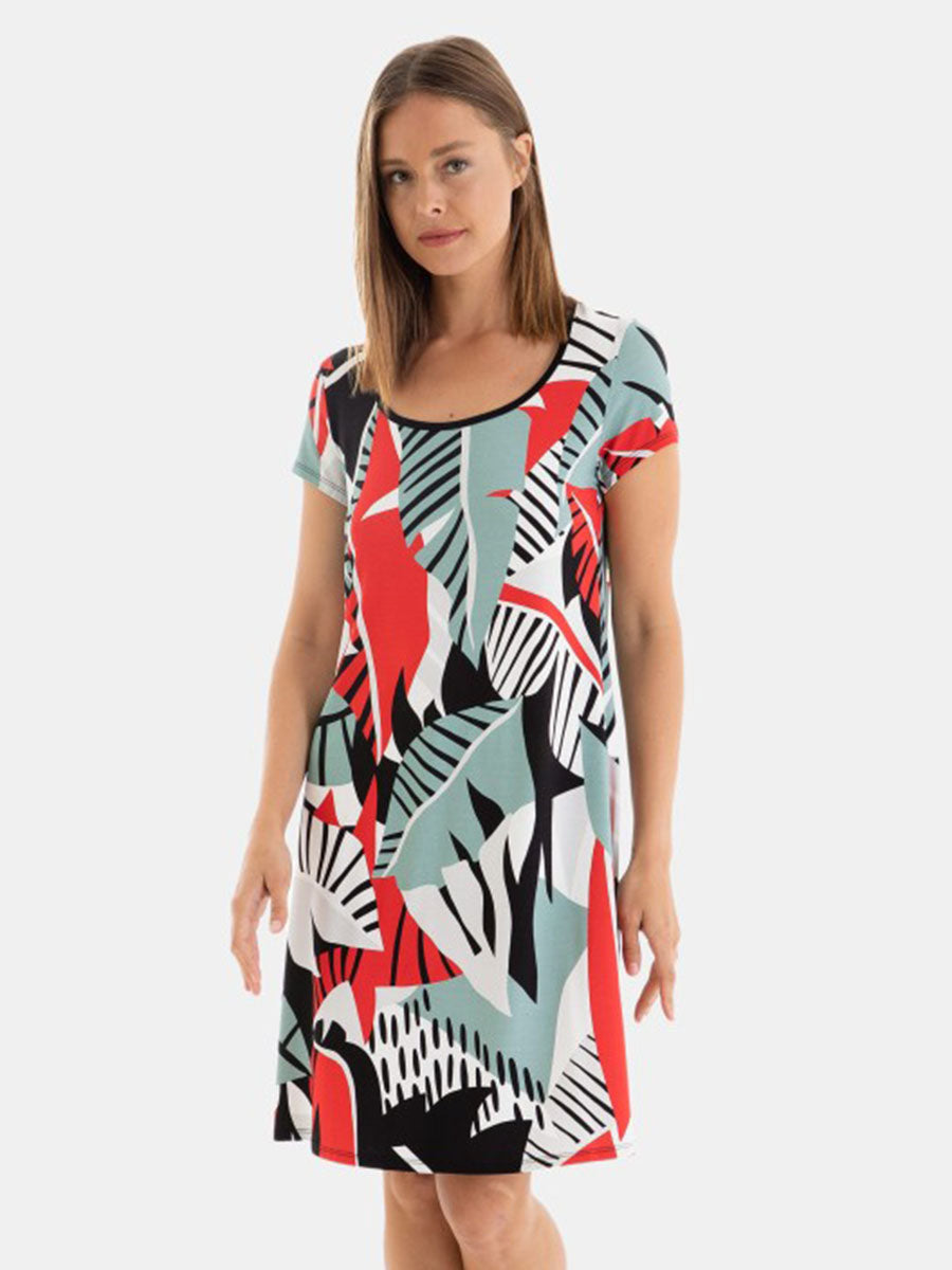 Vestido de mujer de tejido punto viscosa estampado, con manga y escote semicuadrado