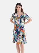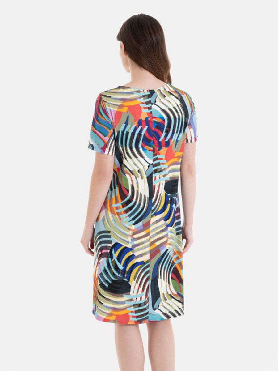 Vestido de mujer de tejido punto viscosa estampado, con manga y escote redondo con abertura haciendo solapa al girar.