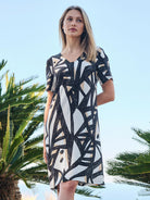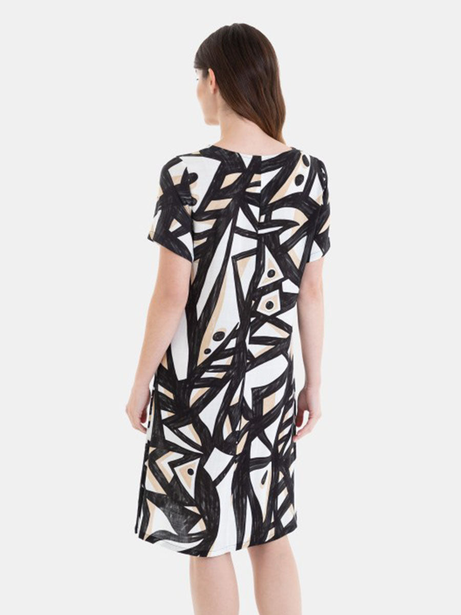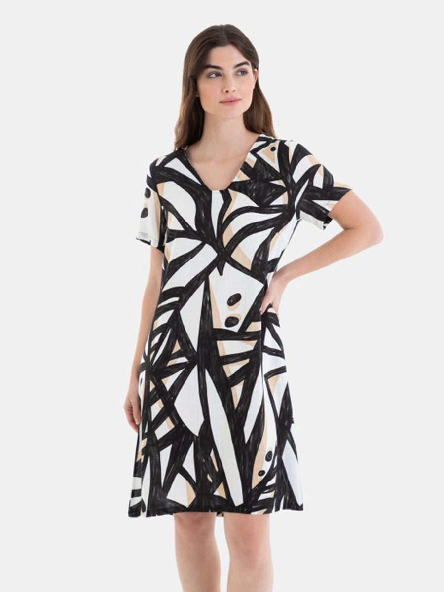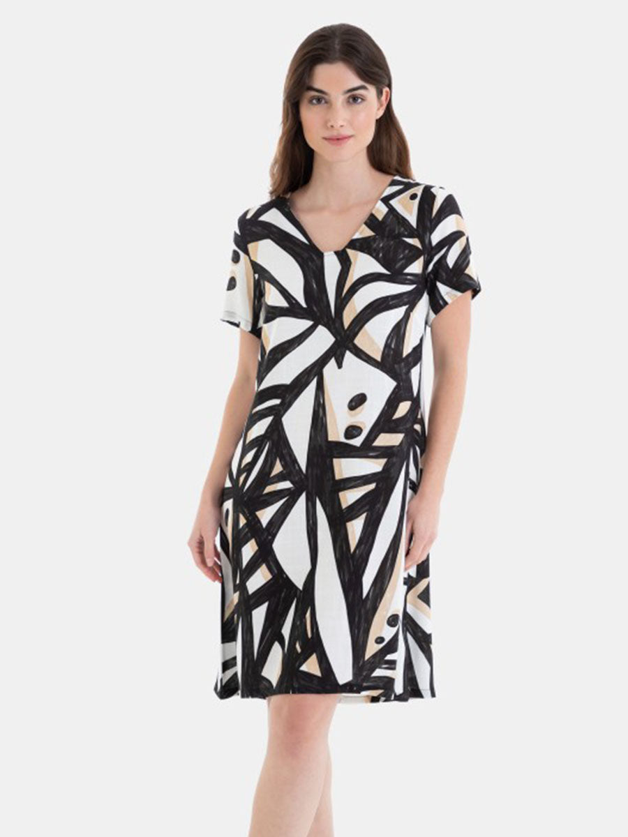 Vestido de mujer de tejido plana viscosa estampado, con manga y escote en "V"