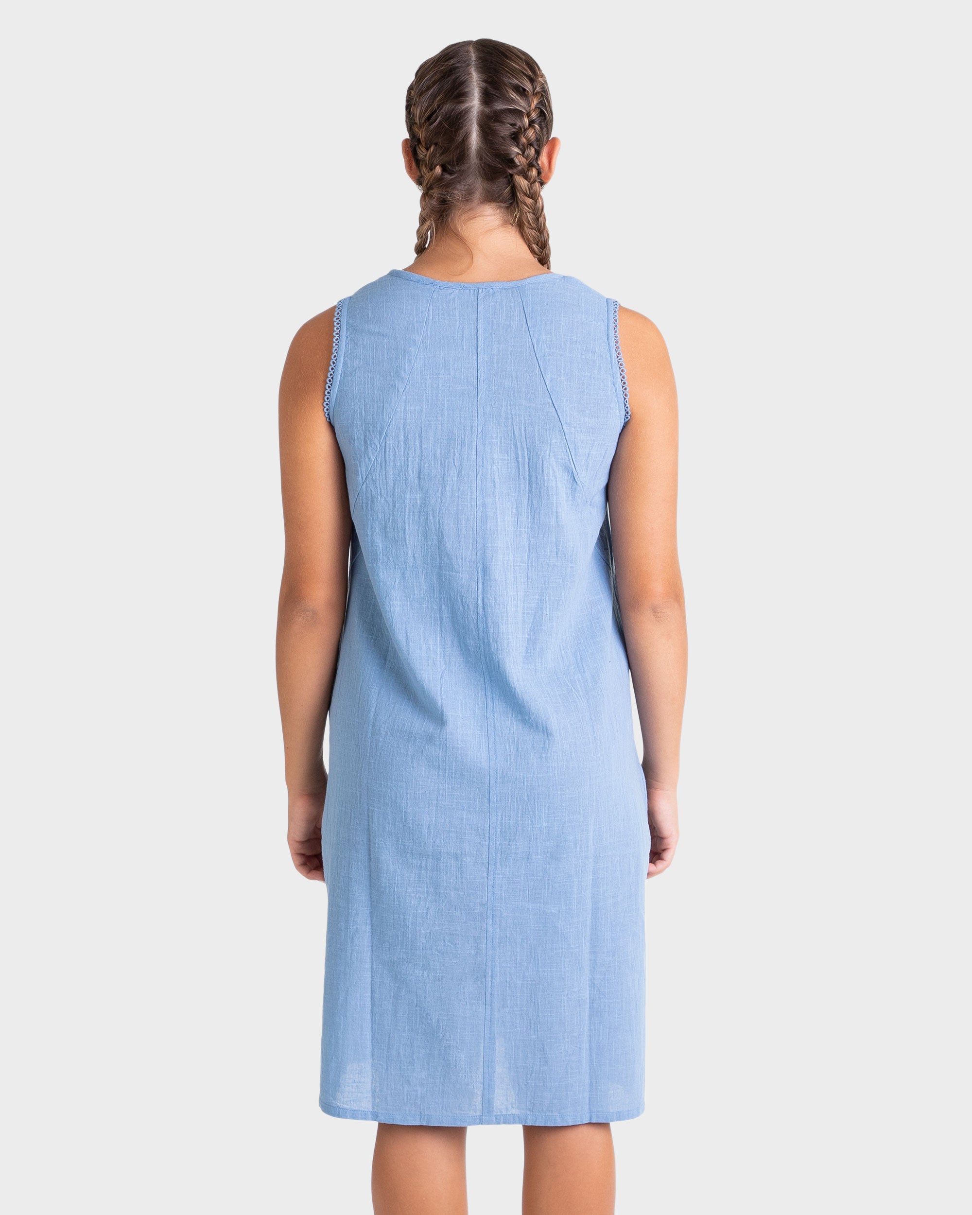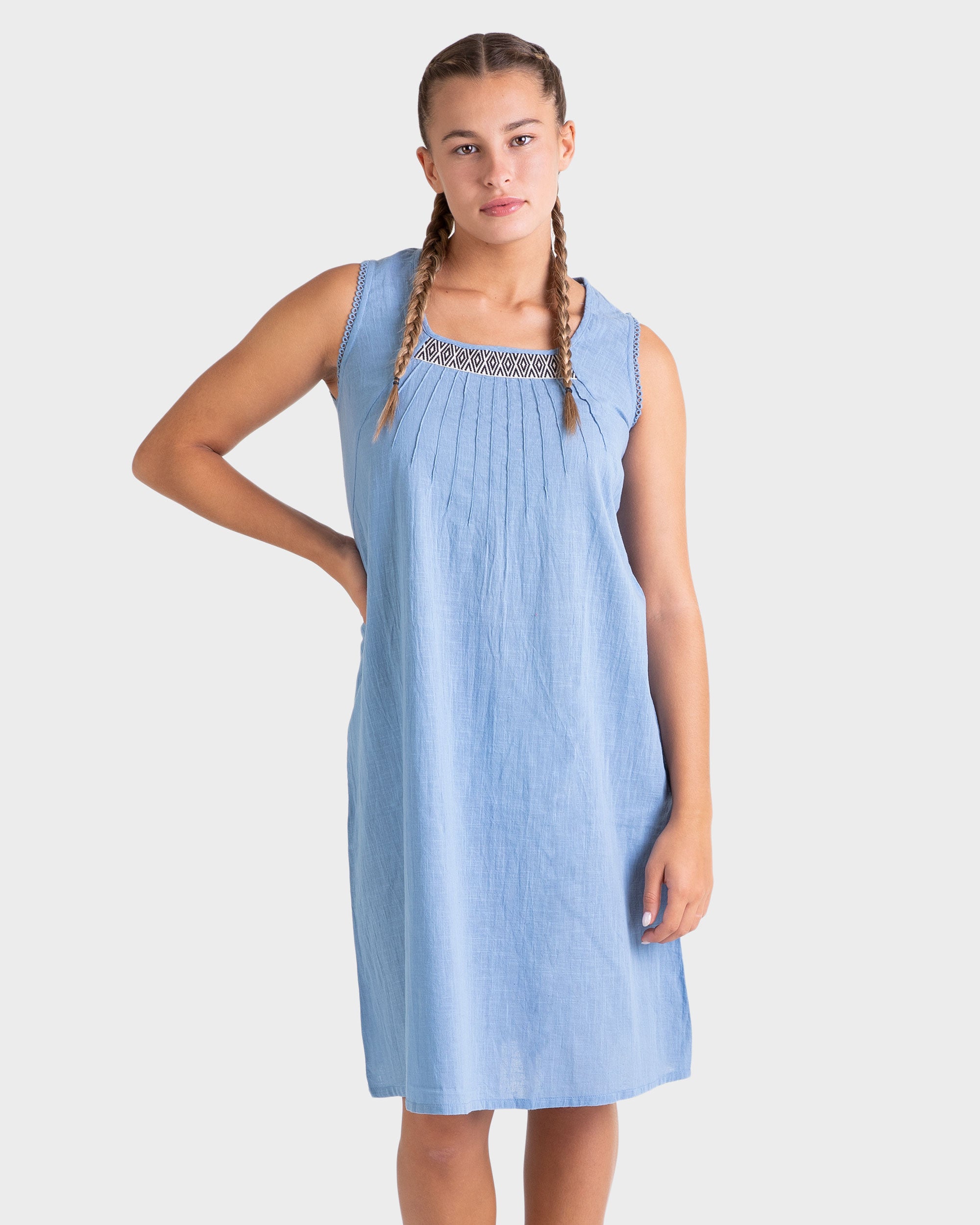 Vestido de algodón, sin mangas y escote cuadrado con detalle étnico.