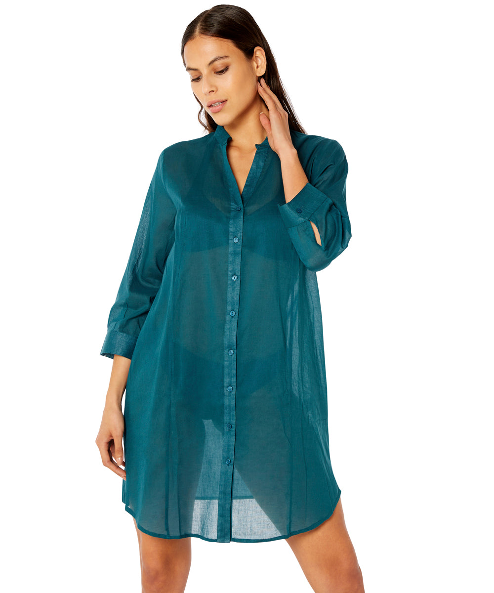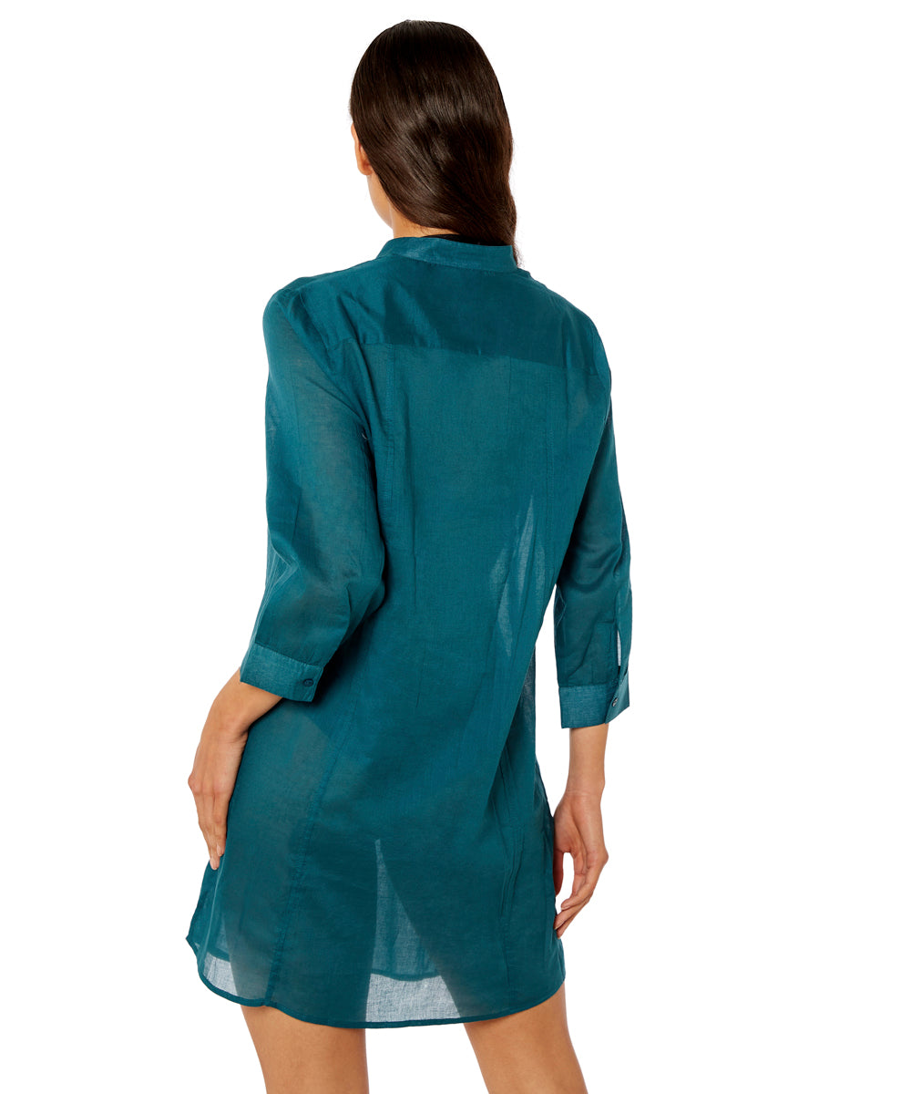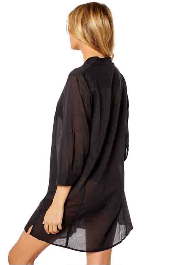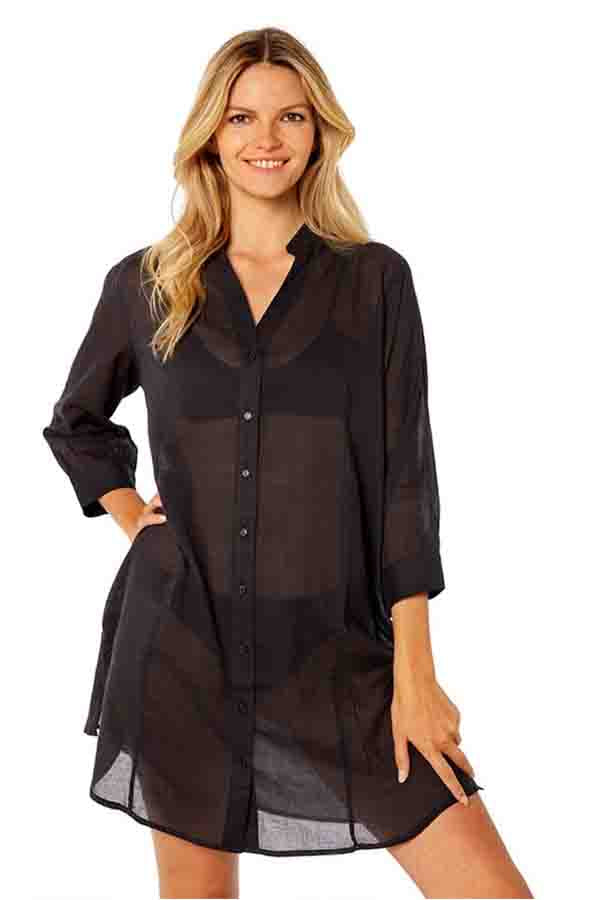 Camisa de mujer de línea lisa con costuras en el delante y detrás y media manga en color blanco.