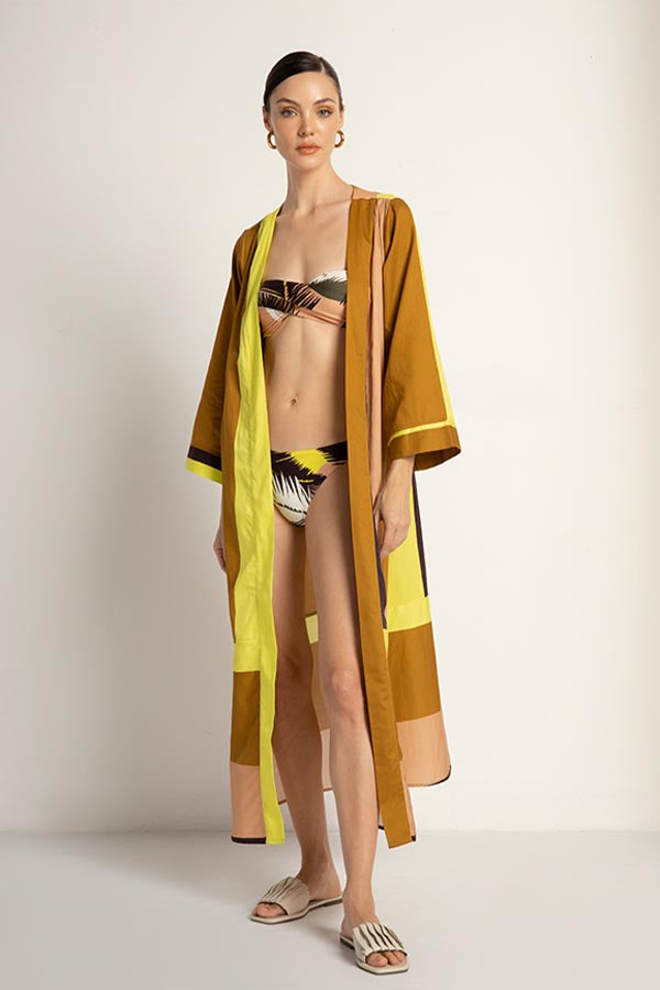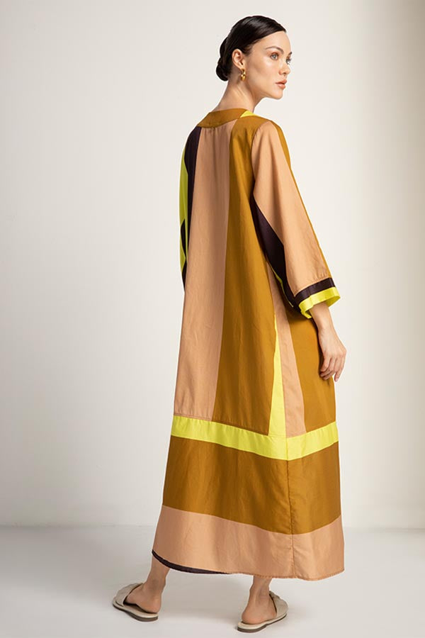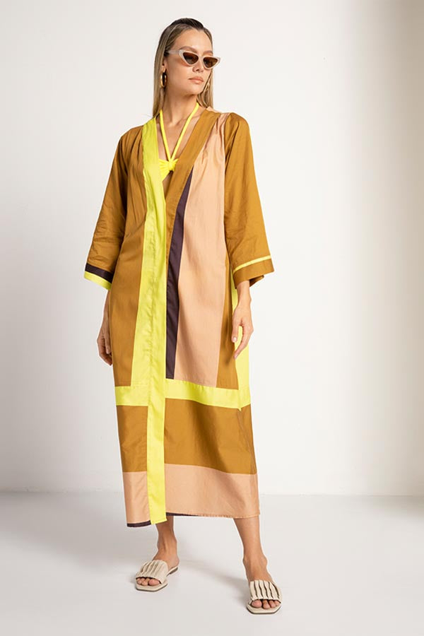 Kaftan corte recto, con la parte delantera abierta y larga cubierta hacia arriba con estampado de rayas , con protección UPF 50+