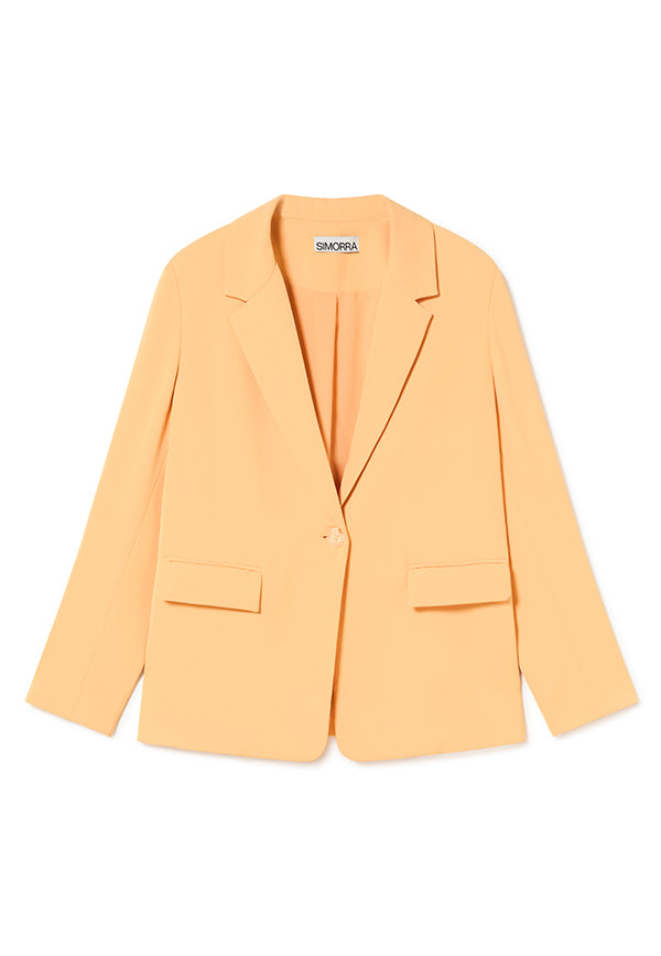 Chaqueta hecha en un crepe fluído. Cierre un botón. Bolsillos de vivo con tapeta.
