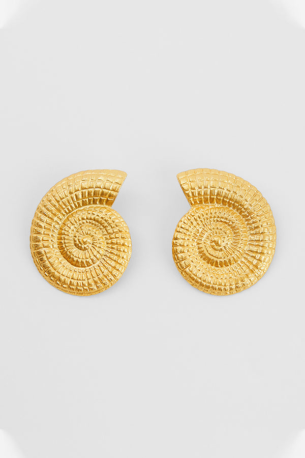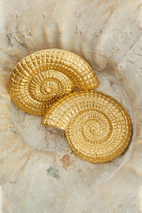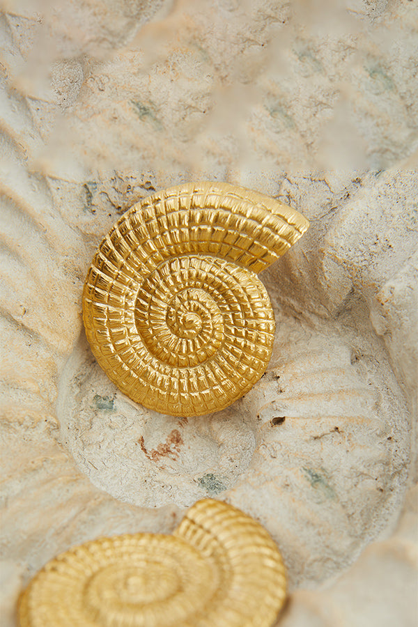 Pendiente con forma de amonite en color dorado. Medida: 5,3 cm