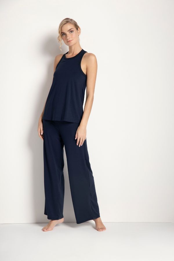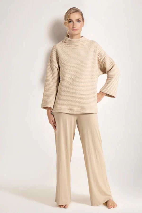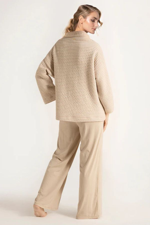 Pijama de 3 piezas, camiseta sin mangas, pantalón de tejido y jersey acolchado con cuello alto, tejido de punto, con forro