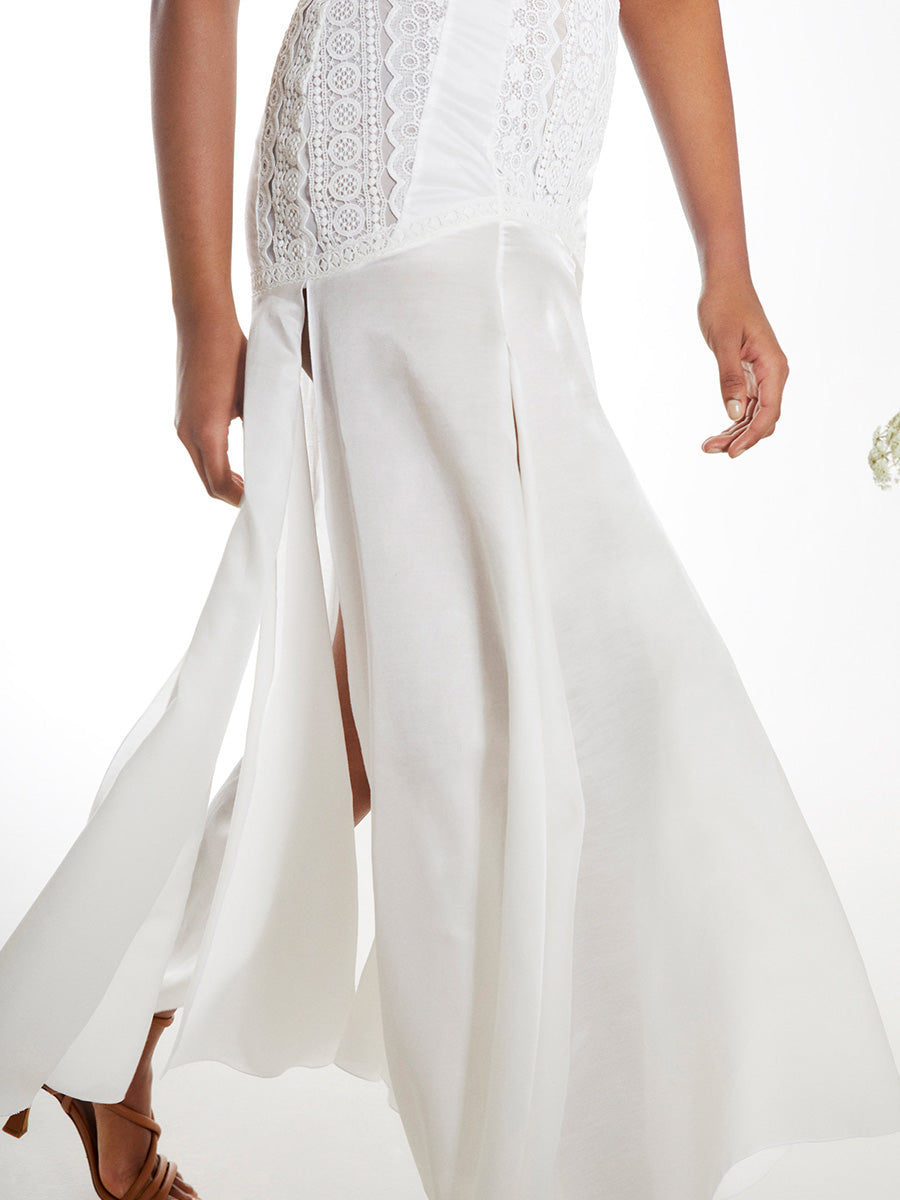 Nuestro vestido TAREL es la estrella de la temporada gracias a la elegancia de su estructura de guipures, que se adaptan a tu silueta desde un escote halter hasta una sinuosa falda de seda con algodón. Sus texturas y complejo cuerpo de tiro bajo harán que te sientas espectacular toda la temporada.
