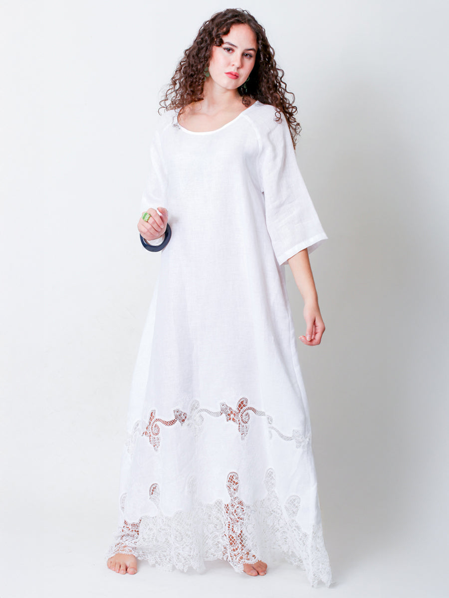 Vestido de lino sencillo y ventoso para mujer, perfecto para primavera y verano.