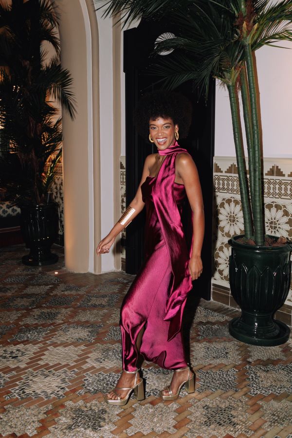 Vestido largo escote palabra de honor, donde se unen sencillez y elegancia. Su favorecedor corte y el detalle de su escote, hacen del vestido Bardot la mejor opción si buscas un vestido sofisticado y fancy. Juega con la lazada y ponla como más te guste alrededor del cuello para darle tu toque especial.