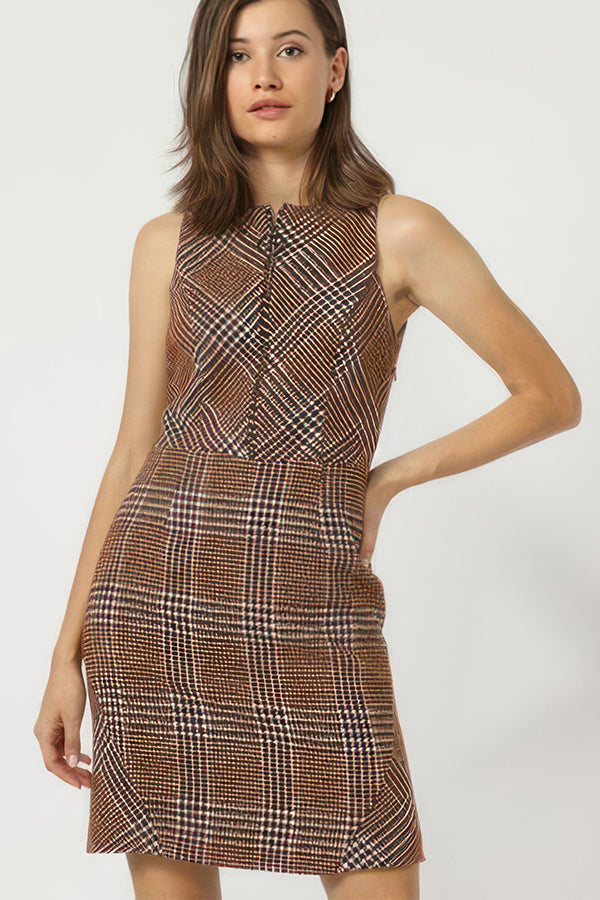 Vestido de lana cuadro de gales. Cuello redondo y manga cero.