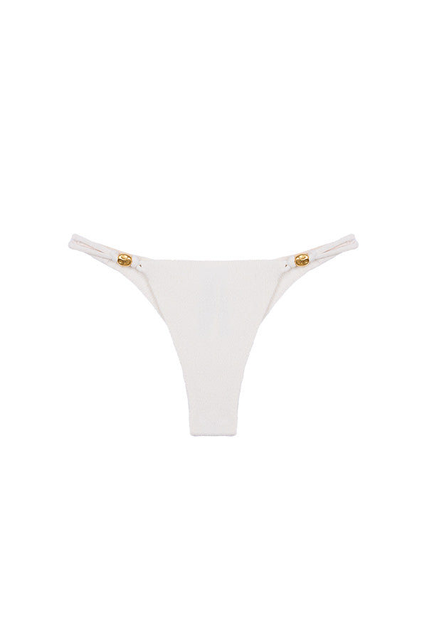 Bottom de bikini, con una mezcla de cilindros, las tradicionales esferas recubiertas de tela, ahora con cuentas más grandes pero sin acabado metálico. Proporciona un efecto "lifting de glúteos" que se amolda perfectamente al cuerpo. Pequeña cobertura.