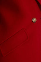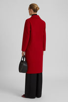 Abrigo de lana doble faz cosido a mano. Cuello solapa. Cierre mediante botones y bolsillos con cartera en laterales.