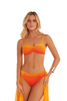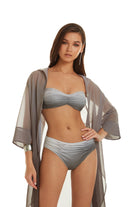 Bikini de dos piezas. Escote en forma bandeau con aro y varillas laterales para un mayor soporte. El drapeado del top y la braga crean un favorecedor efecto visual y a su vez favorece y disimula. Incluye tirantes opcionales que se pueden colocar por los hombros o por el cuello. A modo de poema visual donde las rosas cobran vida, la exuberante energía de un jardín en plena floración, que entrelaza belleza y elegancia natural.