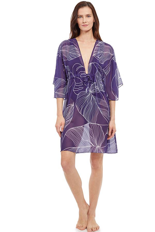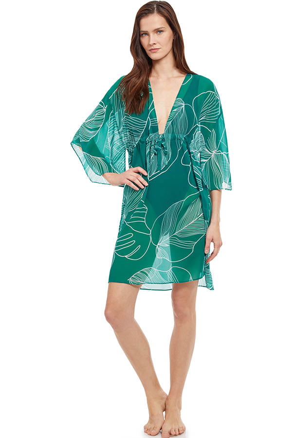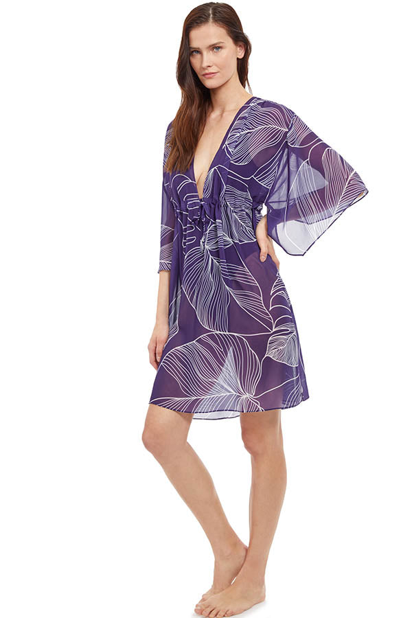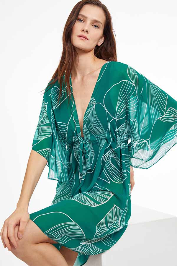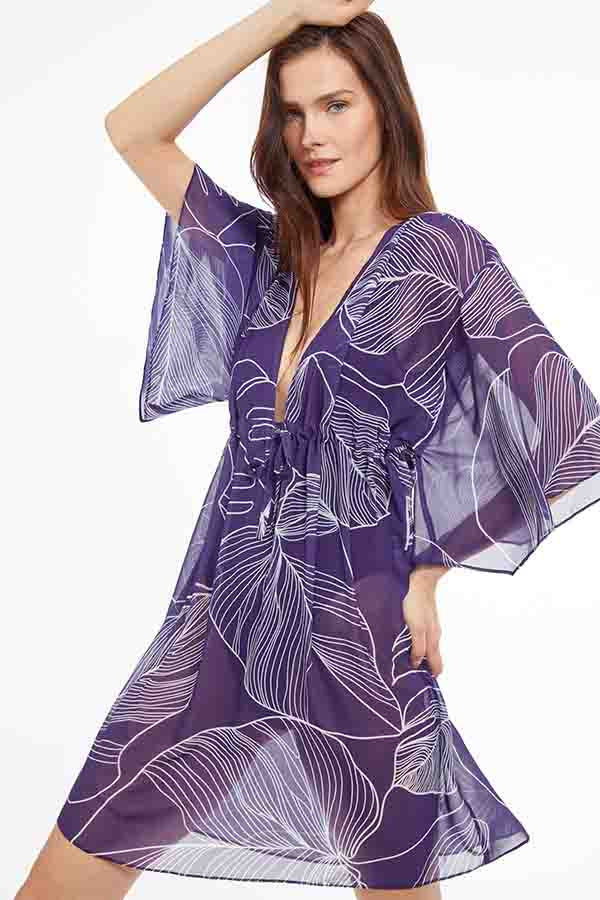 Blusón manga 3/4 con cinturón regulable en la cintura.
