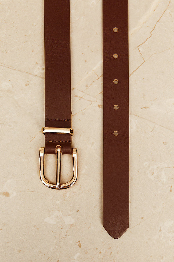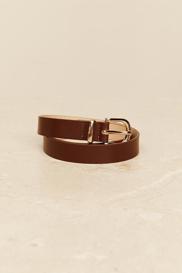 Cinturón de piel. Cierre mediante hebilla y pasador metálico.