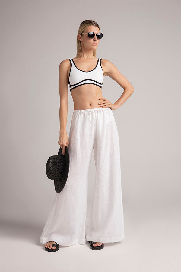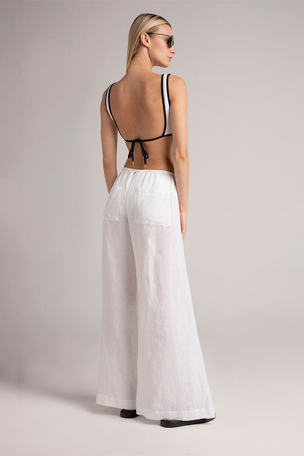 Pantalón ancho con correa ajustable en la cintura y extremos dorados., Prenda ECO diseño de lujo, creados con materiales sustentables para el cuidado y conservación del medio ambiente.