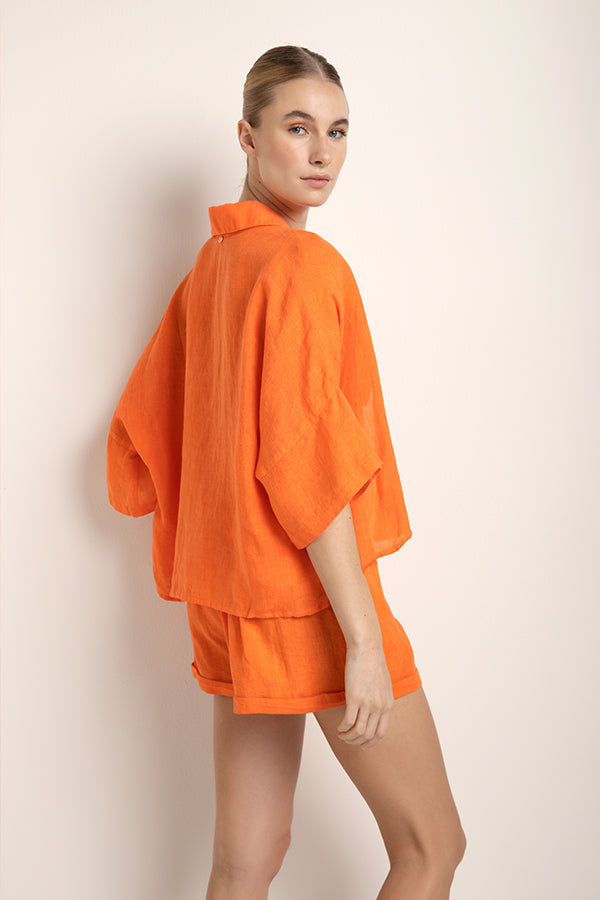 Pantalón corto con dobladillo, cinturilla trasera elástica y bolsillos laterales, producto ECO.