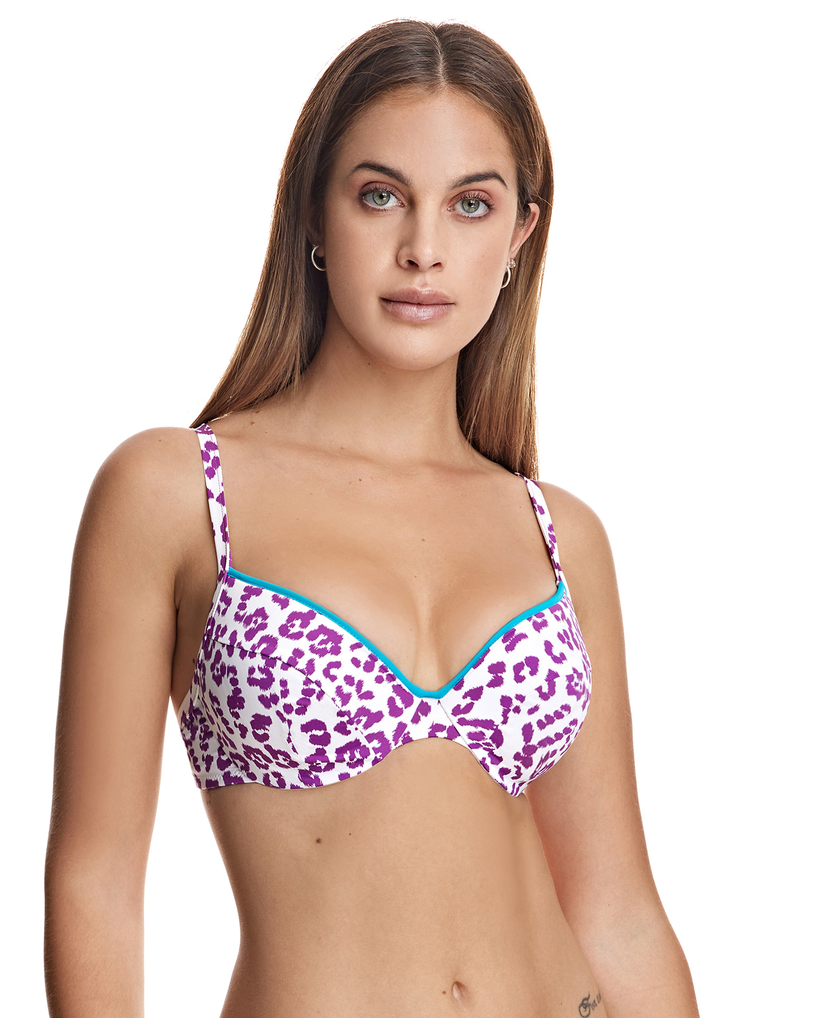 Top de bikini de gran capacidad con aro y copa suave, tirantes delgados y regulables.