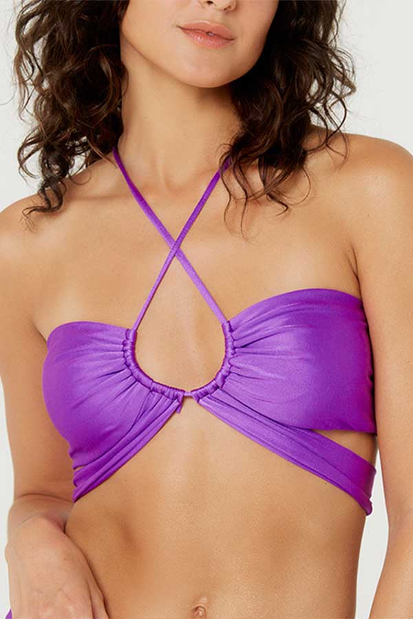 Top de bikini, especial, con copa suave, con tirantes delgados tipo halter, y regulable en la parte del busto.