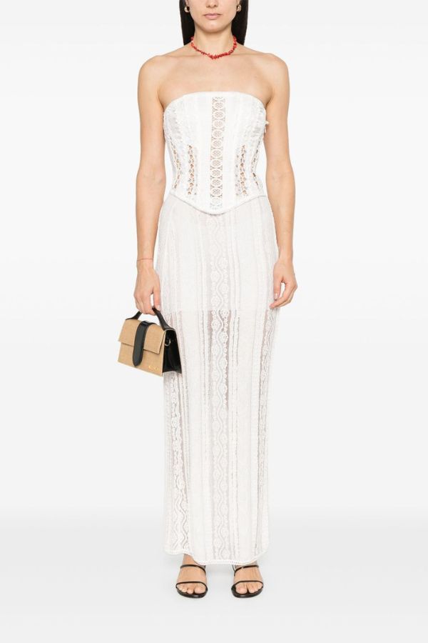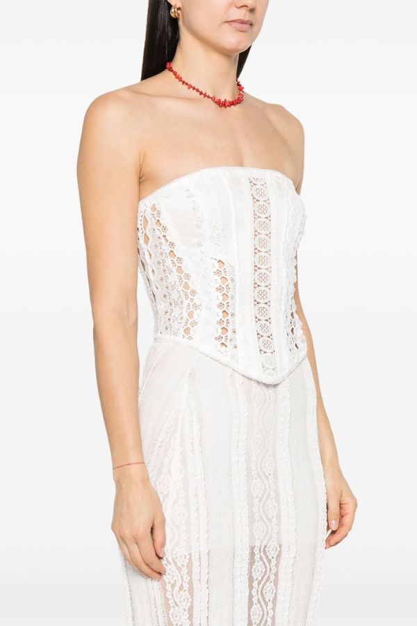 Deslumbra con elegancia en nuestro exquisito bustier de guipur LATHIE. Este sofisticado diseño combina las favorecedoras direcciones verticales con la feminidad de un escote palabra de honor, creando una pieza única que te hará sentir bella toda la temporada.