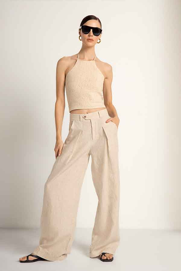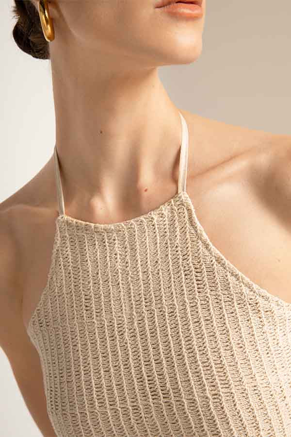 Top halter de ganchillo con tirantes cruzados en la espalda.